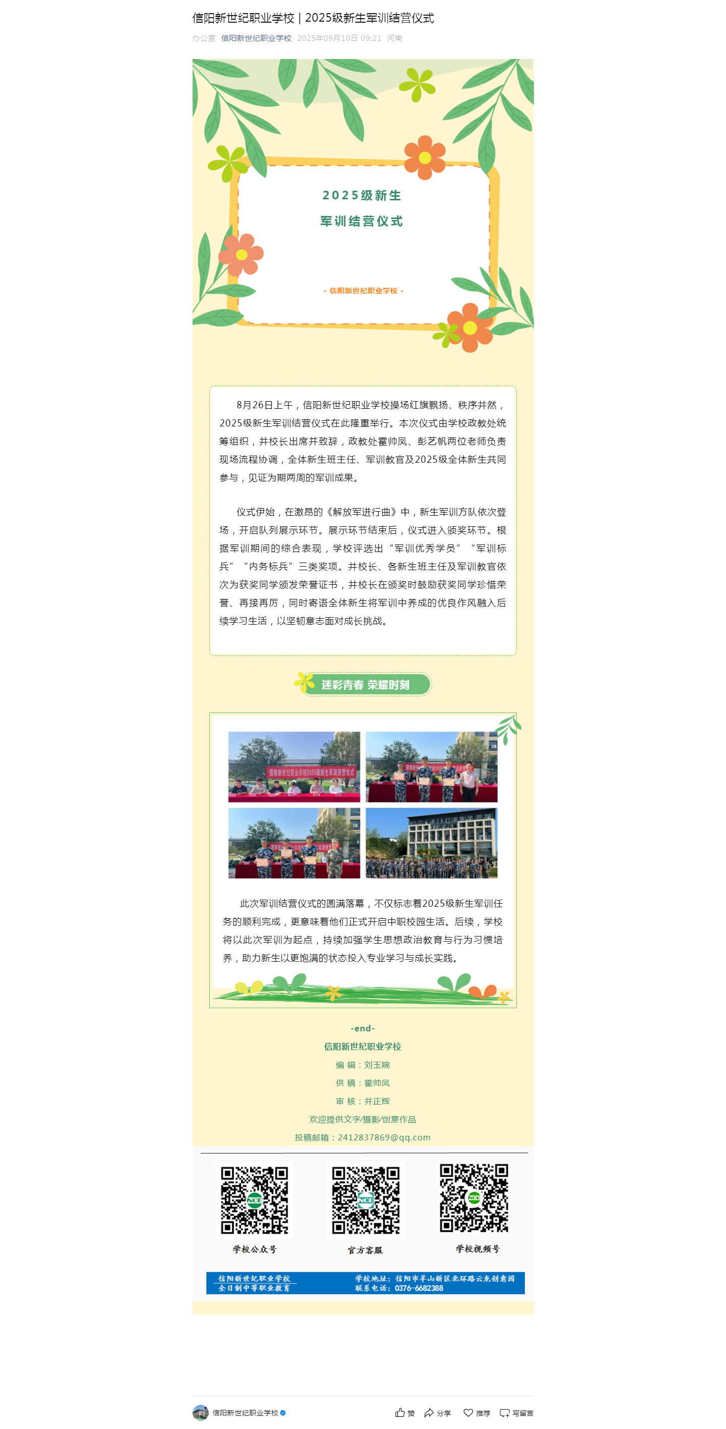 信陽新世紀職業學校 | 2025級新生軍訓結營儀式